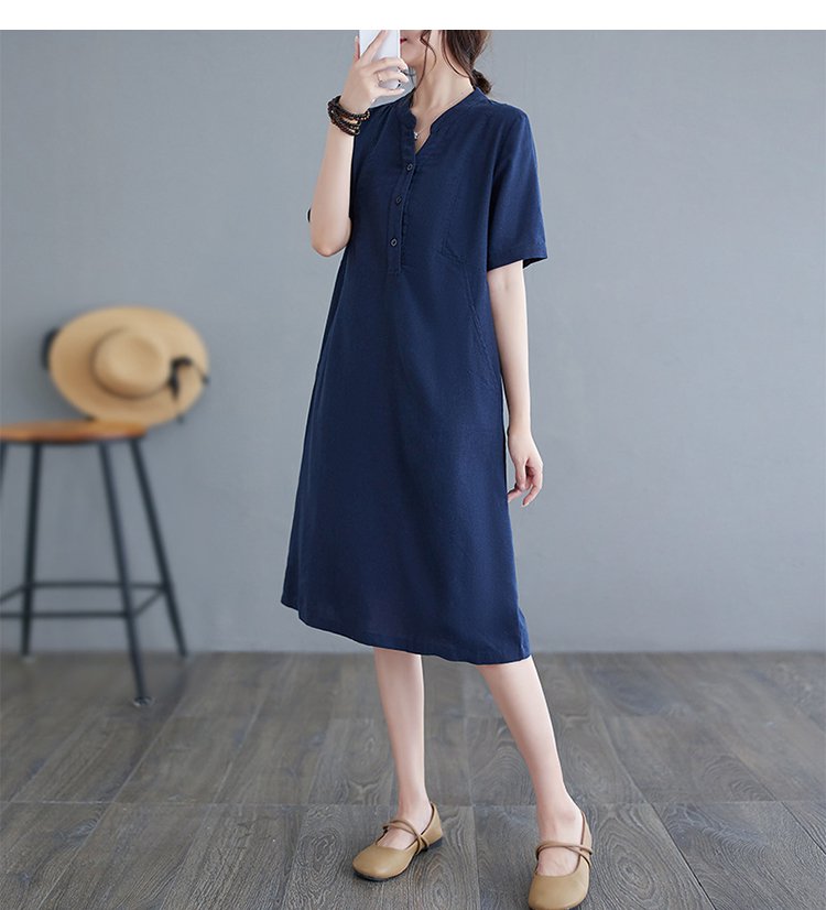 綿麻Vネックワンピース